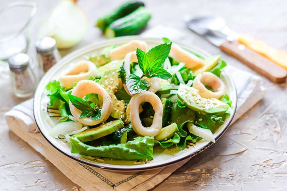 Экзотический салат из кальмаров и авокадо