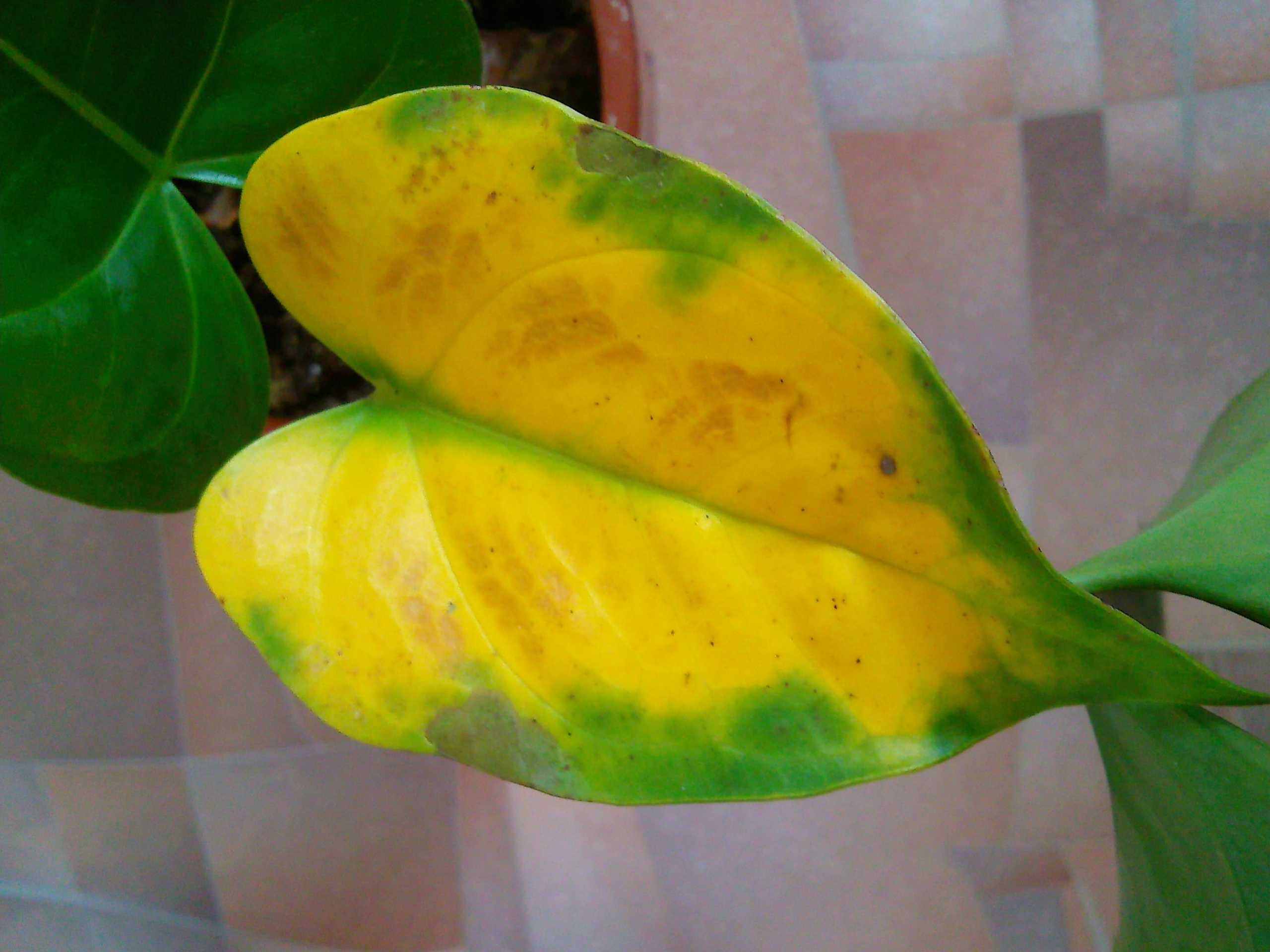 Желтые листья — просьба помощи от антуриума